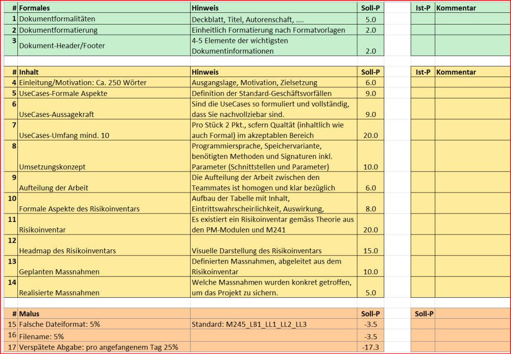 • Fehlen während einer Projektarbeit kann zur Wiederholung des Moduls führen.