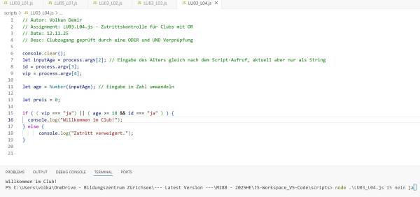 Erstellen Sie eine zweite Version des Scriptes der Aufgabe LU03.A02, welche die Bedinungen durch eine logische ODER verknüpft: Man kommt nur in den CLUB: