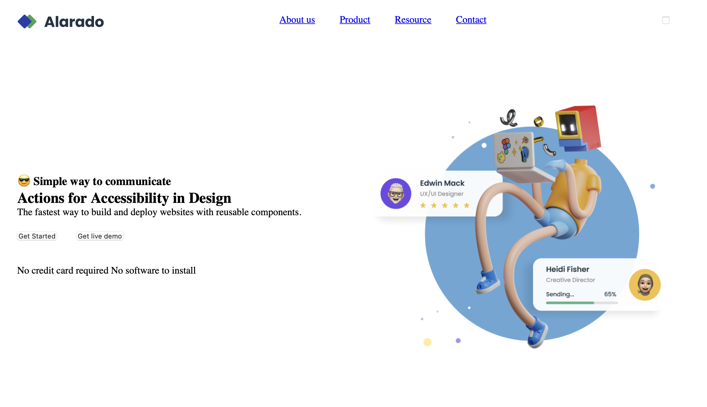 • „Get Started“ wirkt wie ein Hauptbutton.