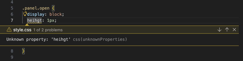 Fehlermeldung in VS Code: CSS-Eigenschaft falsch geschrieben.