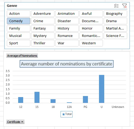 LU01.A02 - PivotChart: Durchschnittliche Oscar-Nominations nach Certificate